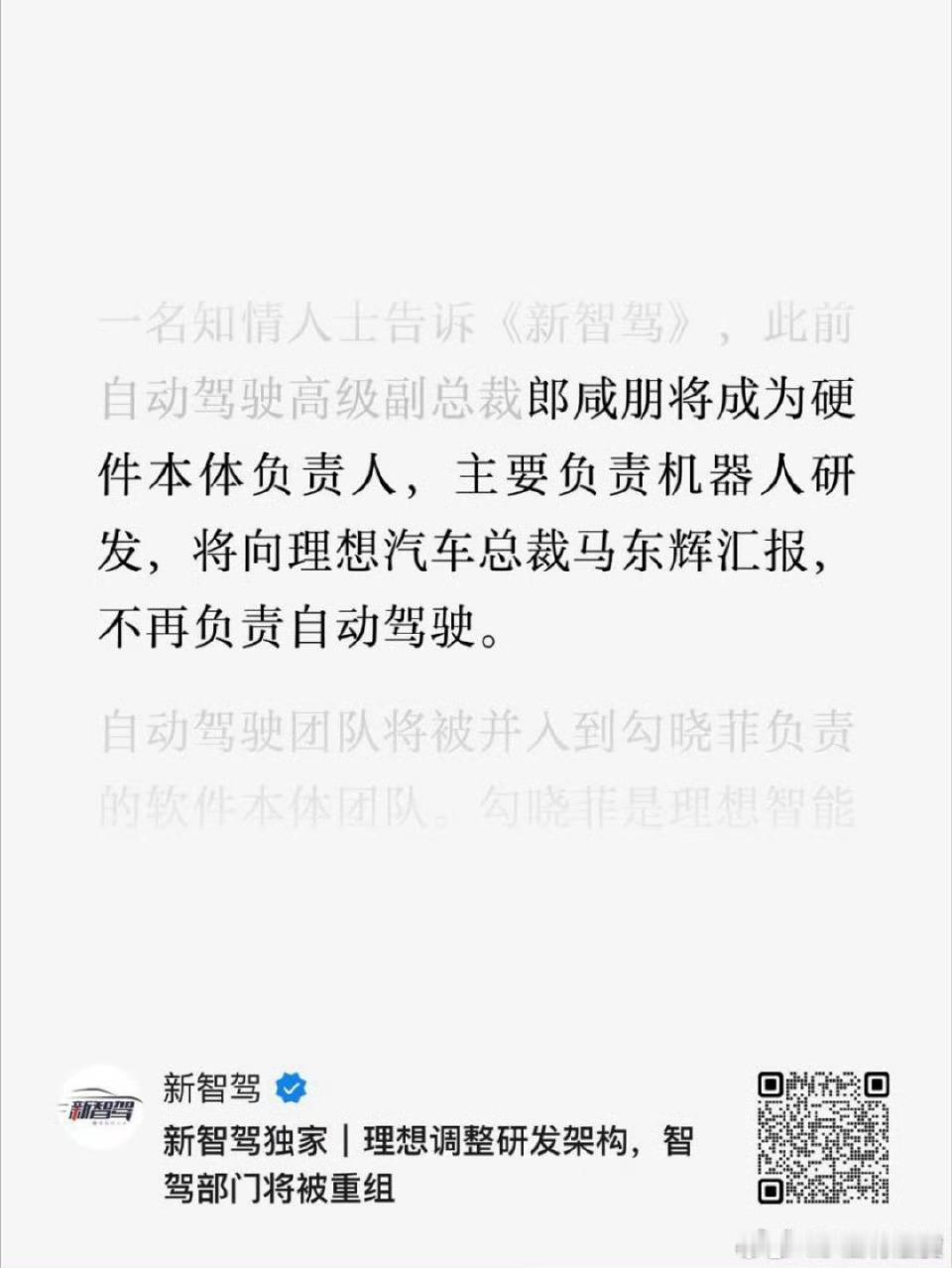 理想自动驾驶老大换人了?郎博去搞机器人了老人创业,新人守业