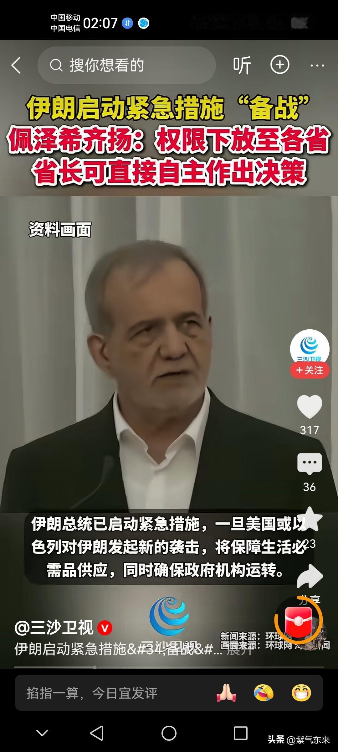 伊朗这是有高人指点 不然的话想不出来这么好的备战方法,备战措施颇有东大的风格! 伊朗总统佩泽希齐扬:权限下放至各省,省长可以自主决策! 不得不说,伊朗这一招着实很厉害 伊朗已启动紧急措施,一旦美国或者以色列对伊朗发动新的袭击,将保证生活必需品供应,同时确保政府机构运转! 权力和权限下放,意味着伊朗各省可以因地制宜采取更加灵活的应对措施和抵抗措施,也极大提高了效率! 也避免了一旦伊朗领导人被“斩首”出现混乱和“群龙无首”的局面! 这就把伊朗各级政府的积极性都调动起来了,真正做到全民皆兵,全民参与!伊朗总统