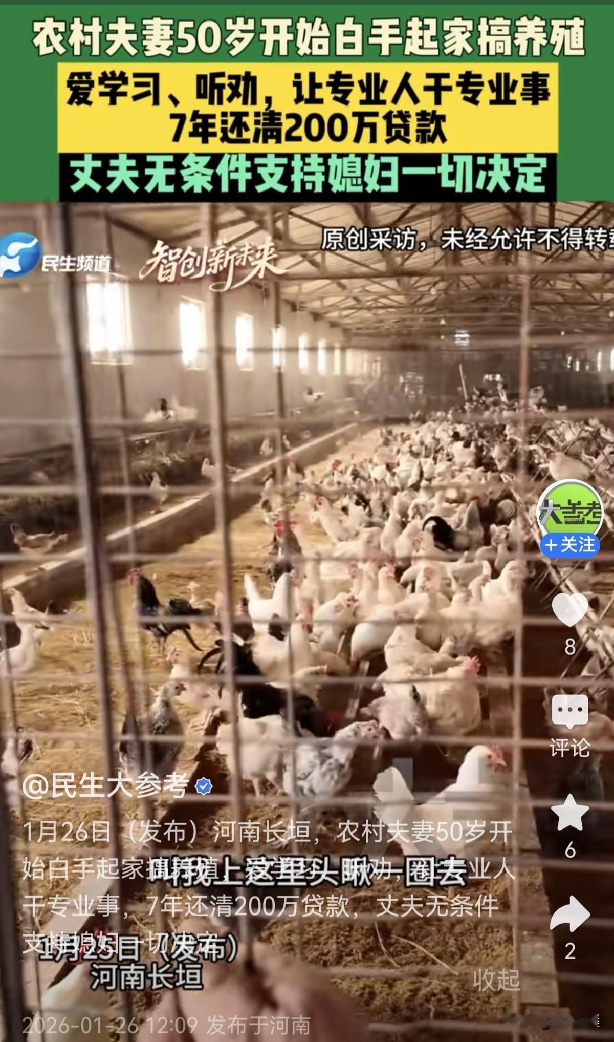 36万枚鸡蛋卖出36万元!农村夫妻逆袭上热搜,1枚卖1元凭啥? 一枚普通鸡蛋0.6元,这对夫妻的蛋却敢卖1元,还被企业豪掷36万元抢购!河南长垣的郭军瑞、孙士学夫妇,50岁白手起家,贷款200万搞养殖,7年还清债务还拿下“全国名特优新农产品”认证。他们的鸡蛋全程无菌养殖,扫码能溯源,连壳都透着“硬核品质”。买家河南矿山集团更是霸气,为员工春节礼包直接“闭眼入”,坚持“选最好的买”。这不是炒作,是优质农产品的硬核突围,更是良心企业对劳动者的双重守护! (信息来源:极目新闻、腾讯新闻、中华网)