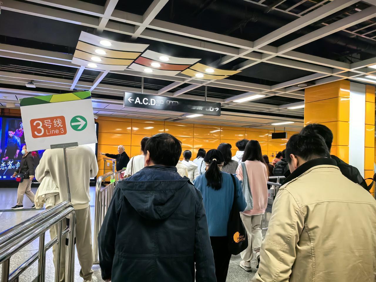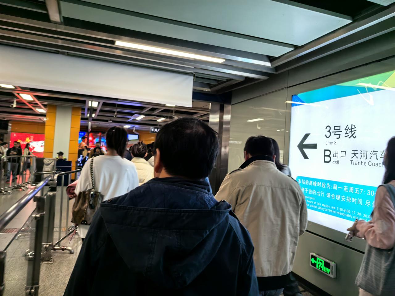广州地铁3号线,乌泱乌泱都是人,各种限流措施如临大敌。幸好我不用进城上班,只是在