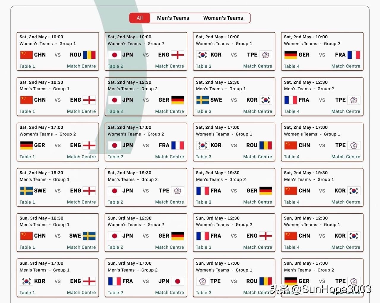 伦敦世乒赛中国队第一阶段赛程表出来了 这速度还真是快,抽签出来没两天,赛程也出来了。 第一阶段8个种子队伍都不会被淘汰,比赛成绩只是决定淘汰赛的排位。 赛程安排的很紧凑, 5月2号17点一场, 5月3号凌晨还有一场, 5月3号19点半还有一场。 期待精彩的赛事。