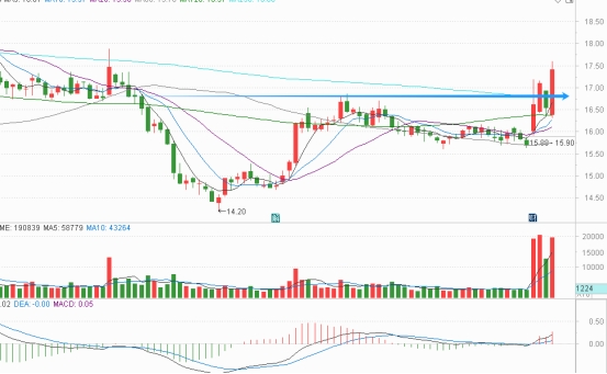 第三点,技术上看,目前公司股价处于底部位置,股价已经站上所有的均线,上方已经没有均线的压制,近3个交易日开始显著放量,节前最后一个交易日更是涨停,从运行轨迹上看,股价存在进一步的上行空间。