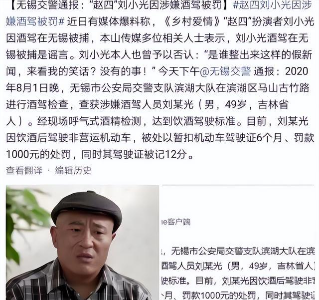 警察打脸!“赵四”刘小光因涉嫌酒驾被罚,网易娱乐