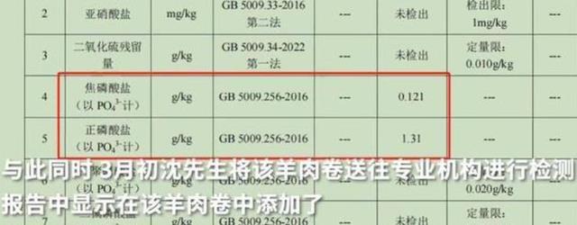 检测结果让沈先生大为震惊,产品中竟然检出了磷酸盐和柠檬酸钠等添加剂成分,这意味着他购买的所谓 “原切羊肉卷” 实际上是含有多种添加剂的合成。