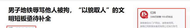 4.原文登载于红网2025年04月20日关于“男子地铁辱骂他人被拘,‘以貌取人’的文明短板亟待补全”的报道