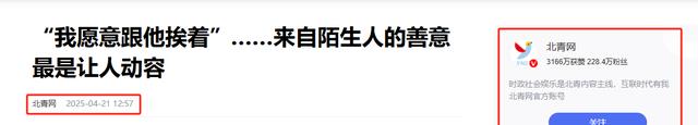 3.原文登载于北青网2025年04月21日关于“‘我愿意跟他挨着’……来自陌生人的善意最是让人动容”的报道