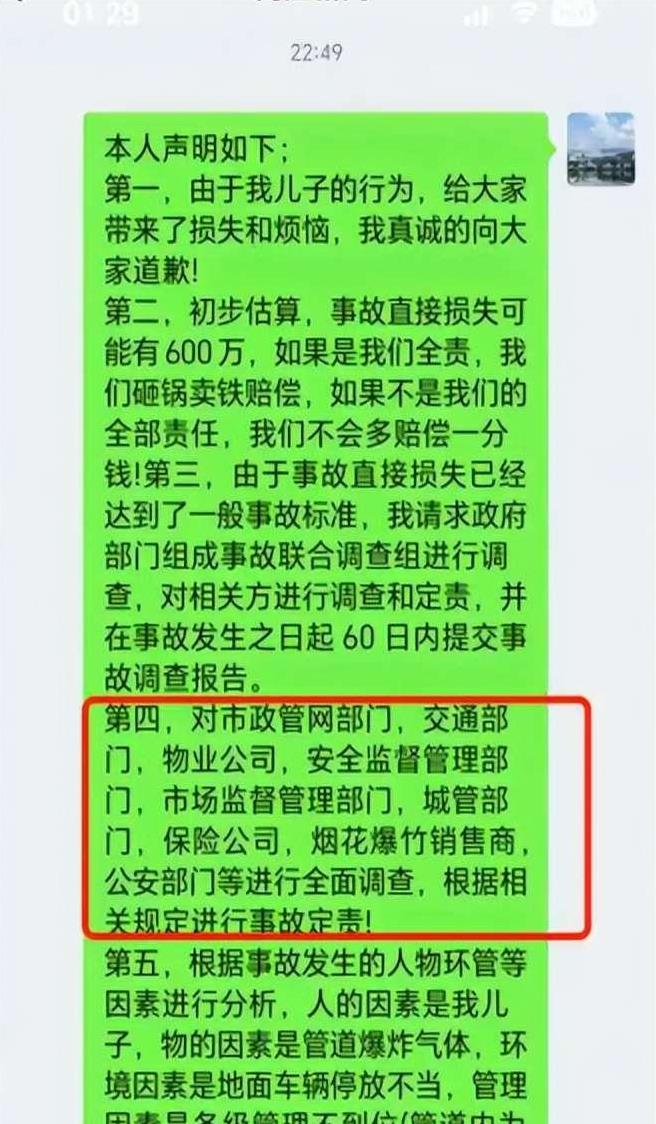 这波流量真是猛呐,车主的粉丝一下子暴涨了30多万!就直播那会儿,在线观众都超过10万。一次直播下来,粉丝们刷的礼物可不少,这可真是一笔小收入!说不定到了新年,车主还真能再添一辆新车呢。不过,大家最关心的还是被炸后的赔偿事宜。官方好像也有回应,据说受损的那八辆车是分别在三家保险公司投保的。根据这些车的受损情况,估计赔偿金额大概在28.5万元左右。这个钱数啊,是不包括被损坏的路面和地下管道的。现在相关部门还没发布什么消息。律师们都说了,这事儿发生后,小男孩的监护人、市政和物业,还有车主和酒店方面,都多少得承担点责任。咱得注意啊,这几年小孩儿放鞭炮受伤的事儿可真不少。小孩儿安全意识差,这背后其实是有些家长安全知识没普及好。作为孩子的第一任老师,家长们得提前跟孩子讲清楚安全知识,真得防止意外发生啊。