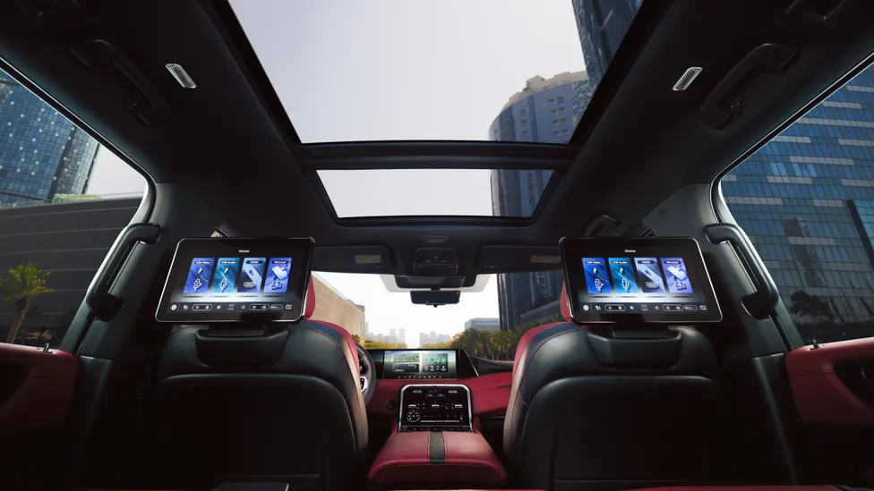车内采用向 英菲尼迪 QX 看齐的数位化座舱设计,以双 14.3 寸屏幕所组成的新世代驾驶界面作为亮点,车载系统内建 Google 功能提升便利性,并采用木质饰板、绗缝真皮座椅与高级音响系统,营造出更显豪华舒适的座舱氛围。在空间表现,大改款 途乐 采用 2+3+3 三排八座配置,第三排后方具备 578 公升置物容积,若将第二、三排座椅倾倒后则可扩充至 2,750 公升,发挥出强大的乘载机能。