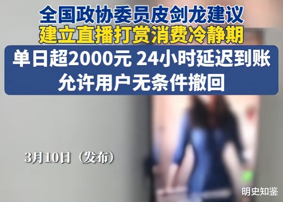 在不久前的2025两会期间,全国政协委员皮剑龙提出建议,要设置打赏消费冷静期,比如说每天打赏超过2000元的,要延迟24小时到账,在此期间如果用户反悔,可以无条件的选择撤回打赏。