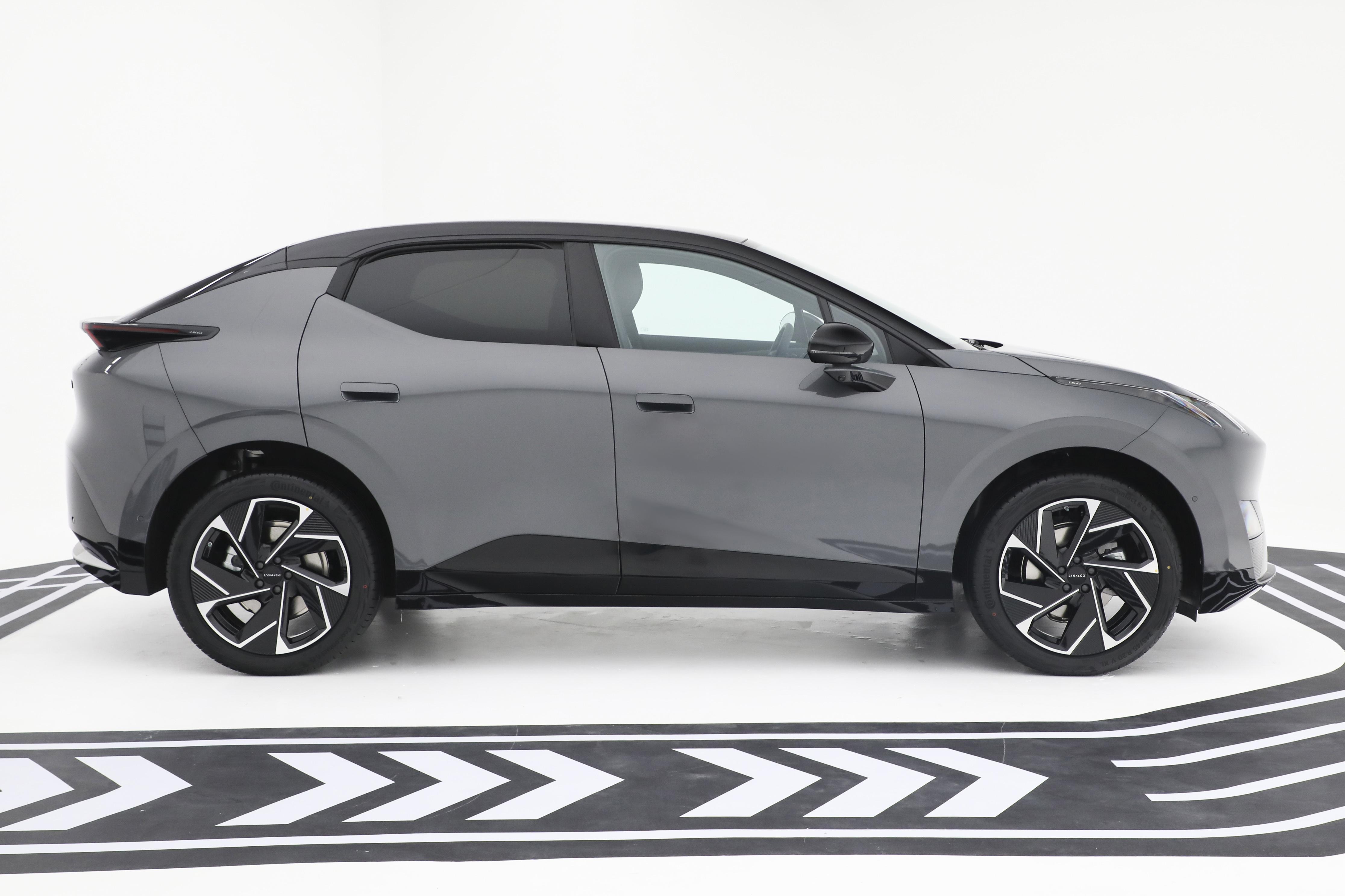 来到车身侧面,可以发现新车的车顶采用了熏黑设计,与车身颜色形成了撞色效果。尾部采用了溜背设计,有着轿跑SUV的姿态。前短悬和后长悬的设计,也让整个车身侧面的视觉重心后移,让整辆车有一种蓄势待发的“俯冲感”。轮毂方面,顶配车型配备了20英寸的轮毂,其余车型为19英寸的轮毂。另外,门把手为半隐藏式设计,实用性也很强。新车的尾灯为贯穿式设计,并采用了四条竖置灯段分割,整体点亮之后具有不错的视觉效果。底部包围处采用了黑色材质装饰,增加了车尾的层次感。