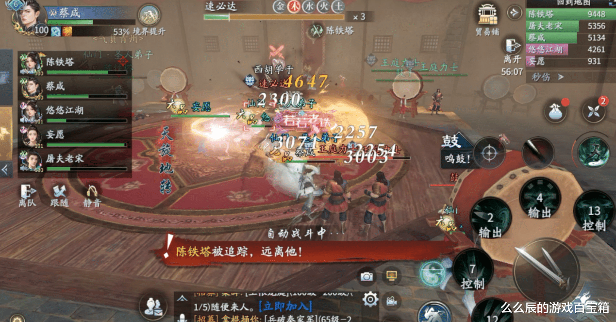 【风雷旋音】是其最难对付的技能,他会标记玩家,然后抱着大鼓进行长时间跟踪旋转攻击,这个时候切忌扎堆!各个队员应该分散站位,由被标记玩家吸引火力,奶妈要为其加好血,并注意躲避伤害,其余玩家在圈外利用远程技能输出。【风雷旋音】结束后,BOSS会进入一段时间的眩晕状态,玩家可以利用这段时间,集火输出。