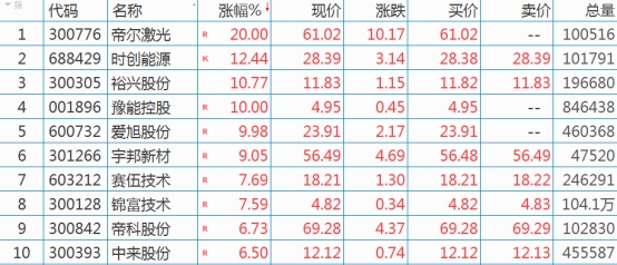 光伏板块:午后光伏板块冲高,BC电池领涨,英诺激光、帝尔激光20CM涨停、爱旭股份、永和智控涨停,隆基绿能涨幅一度超5%。