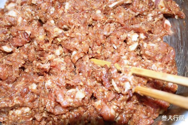 打水:分次加入高汤或清水,每次加入后充分搅拌至肉馅完全吸收,直至肉馅变得粘稠且有弹性。