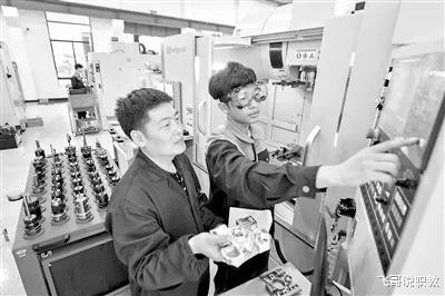 △数控专业学生在教师指导下赶制企业产品。谭云俸 摄