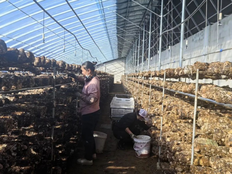 近日,走进内蒙古荣晖农业发展有限公司暖棚,看到一排排香菇菌棒整齐摆放着,工人们穿梭在菇架间采摘香菇。