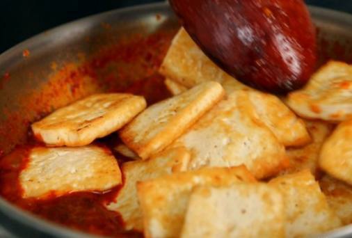 倒入豆腐煮一会儿,直至豆腐吸收酱汁即可