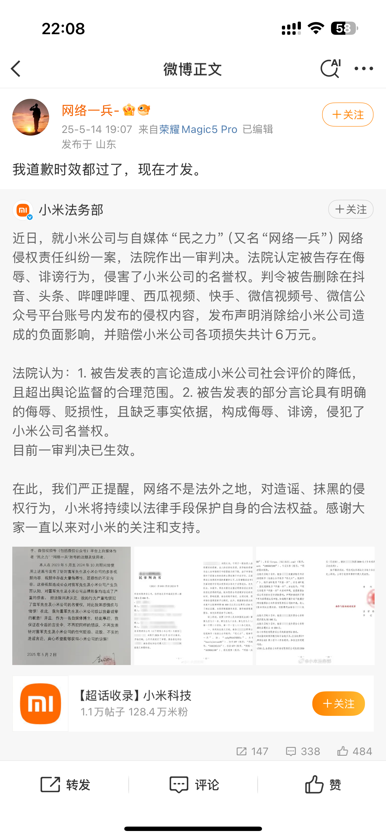 小米立即终止与相关KOL合作数码圈的瓜还是太少了,这么一个事儿也能上热搜。