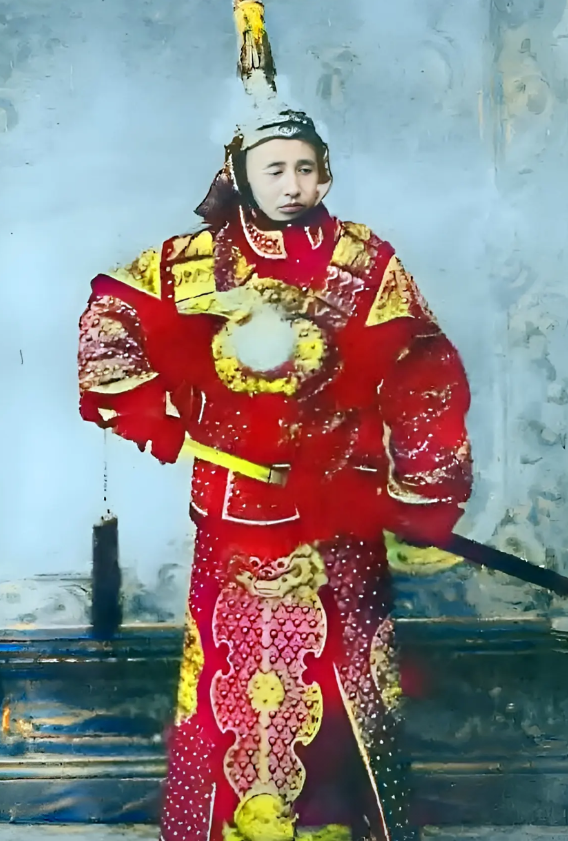 这位身穿甲胄,手持宝剑的将军正是明朝大将袁崇焕的七世孙袁寿山。他的父亲袁富明阿也