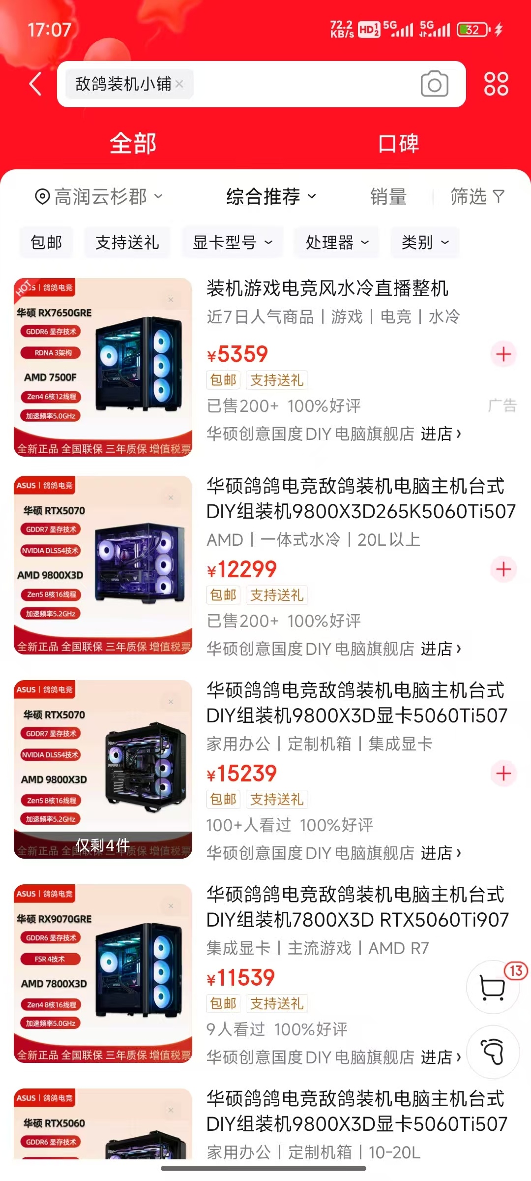 鸽鸽电竞最温暖的一单送男票的机器出现了。主机五万五ROG全家桶顶配(水夜神509