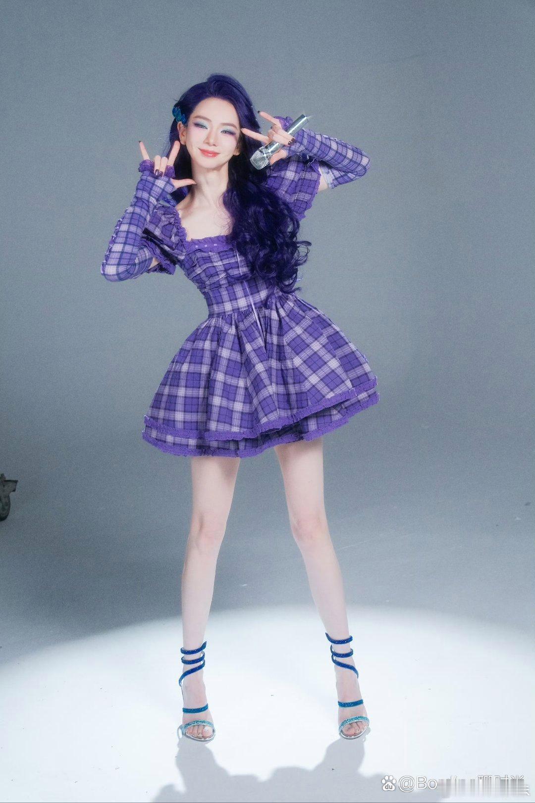 "戚薇穿了件超美的紫色小裙子,拍照POSE满分!"