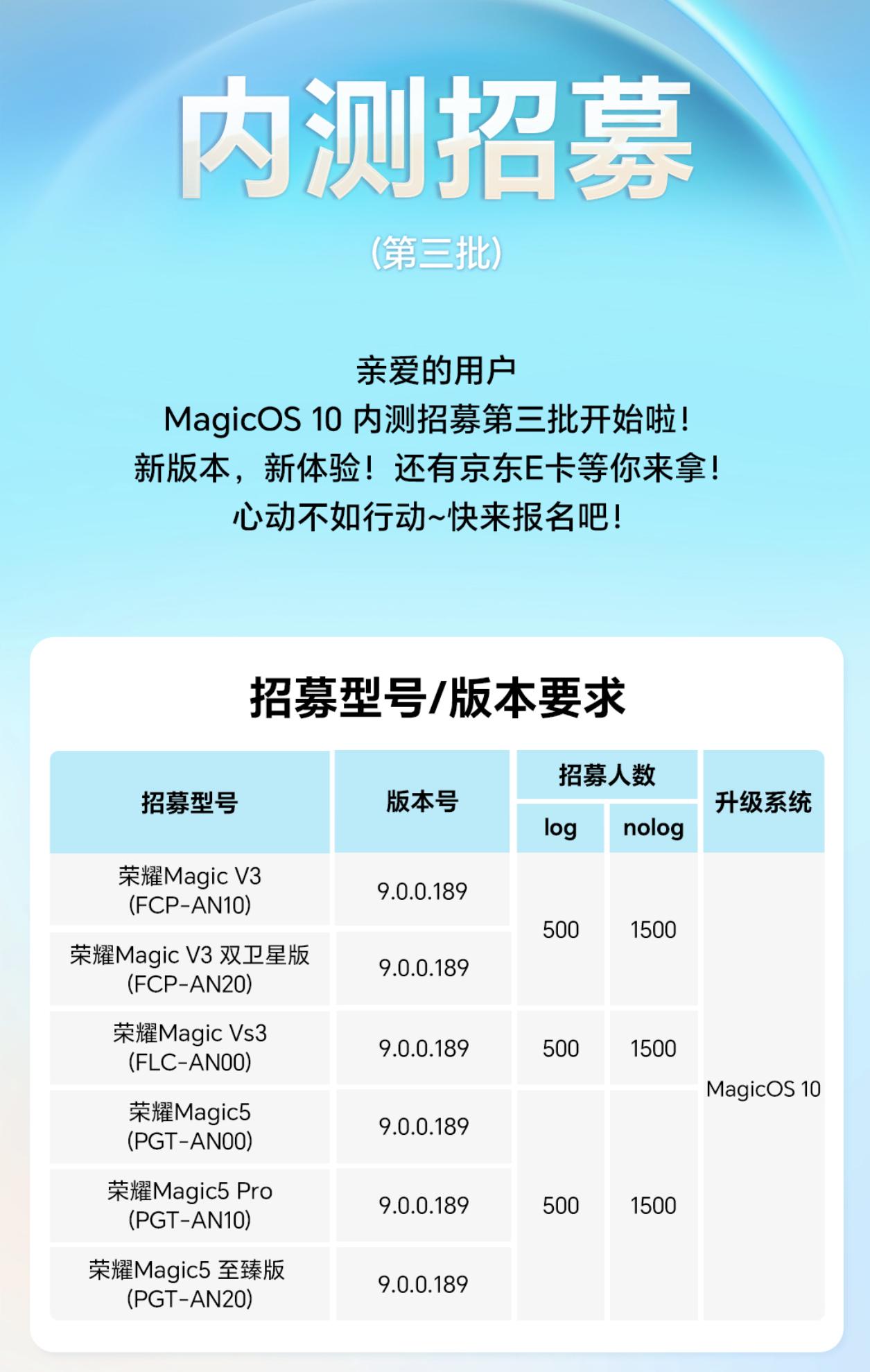 荣耀MagicOS 10第三批内测机型来了,有荣耀Magic5系、Magic V