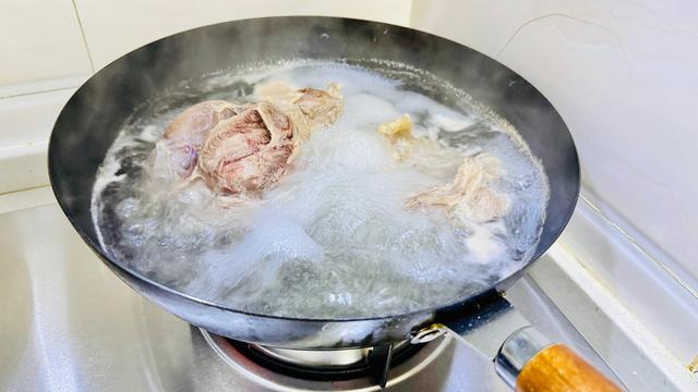 水烧开之再煮一会,因为我之前已经泡过几个小时了,所以再焯水的话就没有那么多血沫了。