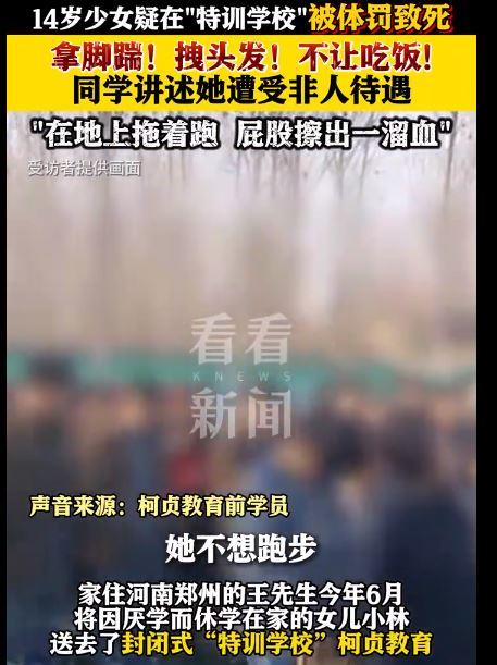 今年六月,河南郑州的王先生忧心忡忡,满脸写着无奈,将因极度厌学而休学在家、如霜打的茄子般精神萎靡的女儿小林,送去了离家三百多公里的封闭式“特训学校”柯贞教育。本是满心期盼着这种特殊的教育方式,能如春风化雨般让女儿重拾对学习的热情,重回正常的生活轨道。然而,谁能料到,14 岁的小林竟然疑似被“特训学校”柯贞教育的教官体罚致死,这一噩耗如晴天霹雳,让所有人都惊愕不已。本是去特殊学校矫正行为习惯,怎会落得如此凄惨的下场?