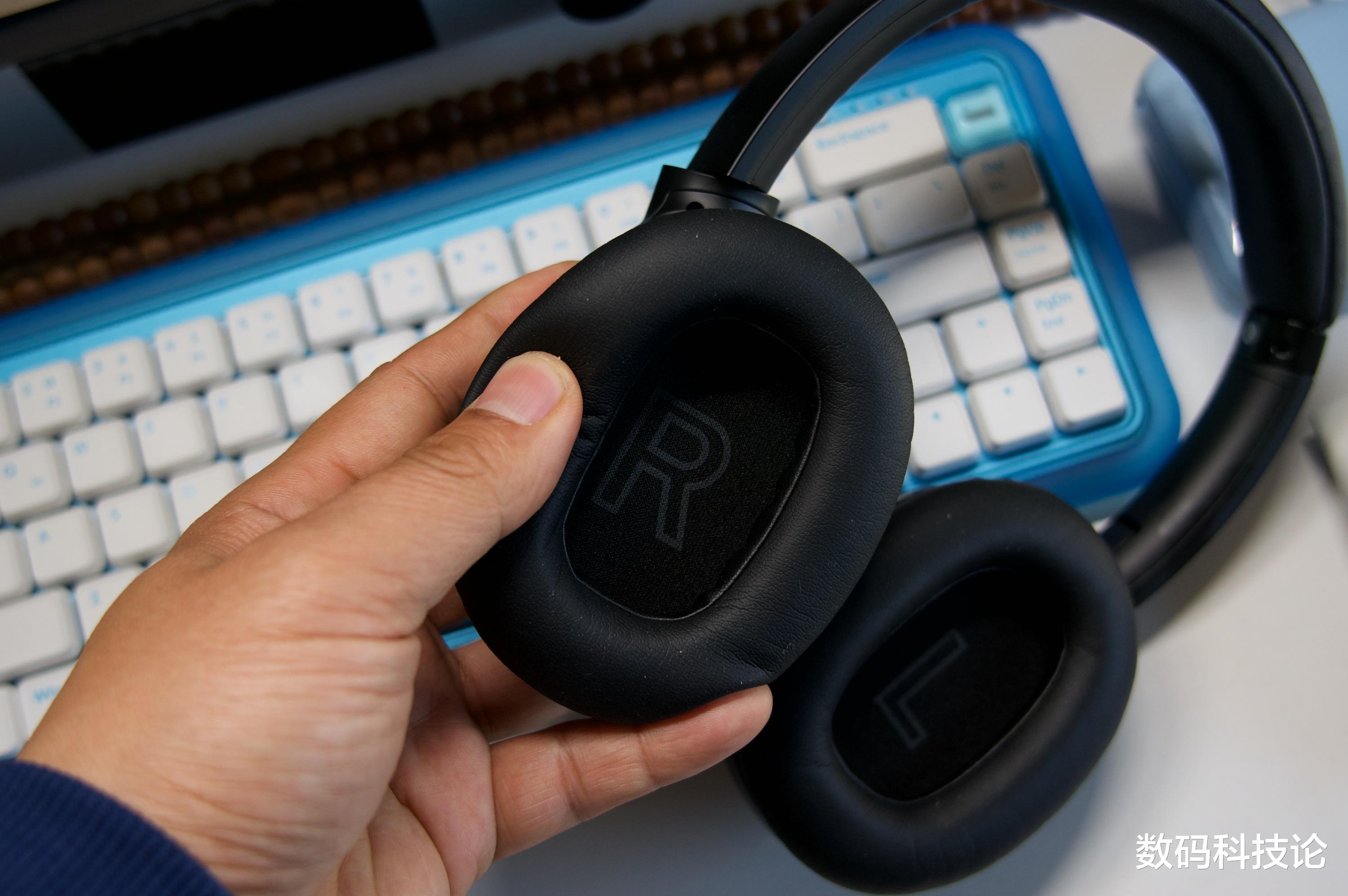 从细节来看,双耳套和头梁内侧都采用蛋白皮材质,并且在左右耳单元内部有L、R的提示标志,质感不错。