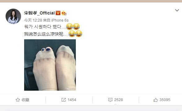 原来,智孝欧尼的袜子破了个洞!网友评论:隔着屏幕都闻到了味道。