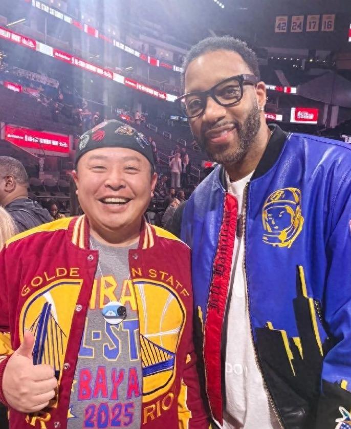 在阎鹤祥的最新动态里,有这样一张照片:他站在NBA传奇球星巴克利和麦迪中间,脸上带着一抹掩饰不住的笑容。