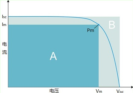填充因子(FF):填充因子也叫曲线因子,是指光伏组件的最大功率与开路电压和路电流乘积的比值:FF = Pm / ( Isc × Voc )。填充因子是评价光伏组件所用电池片输出特性好坏的一个重要参数,它的值越高,表明所用电池片输出特性越趋于矩形,电池的光电转换效率越高。光伏组件的填充因子系数一般在0.65~0.85之间,也可以用百分数表示。