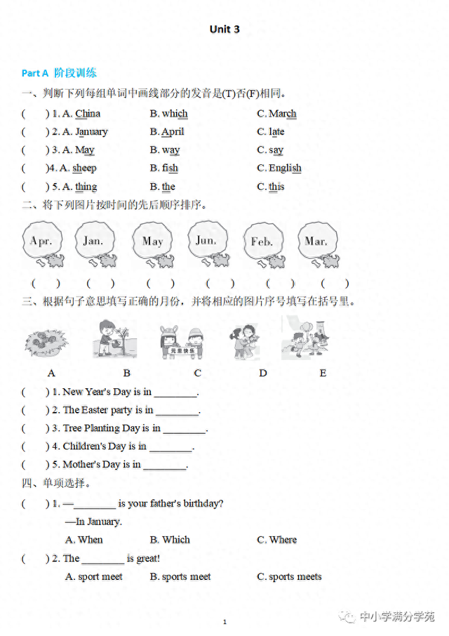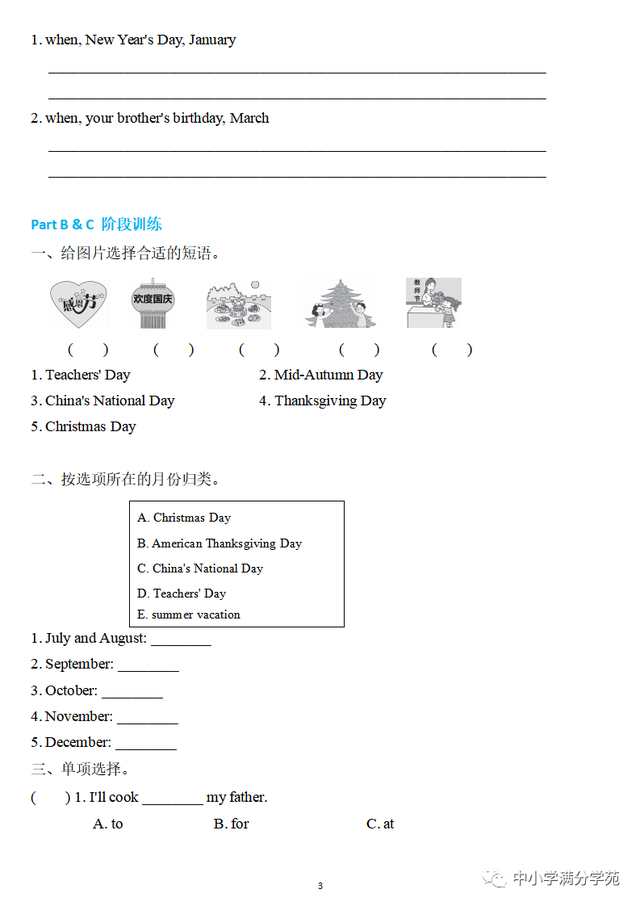 人教PEP五年级英语下册:第三单元精编同步练习+答案