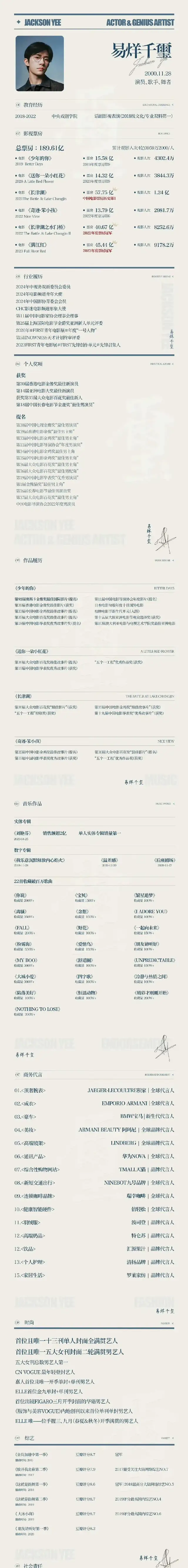 易烊千玺自从进入电影圈以后的路,简直可以说是开挂般的存在。别说是跟王俊凯比,就是放眼整个中国影视史,他都是数一数二的人物。