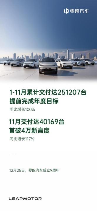 所以你们看过零跑11月的销量么?4万多辆的数据,足够让打价格战保命的合资车羡慕嫉妒恨的了。还有1-11月,零跑累计交付量达到了251207辆,提前一个月完成了2024年的销售目标,这些数据都是怎么来的,靠的不是价格战无底线,就是自己的硬实力。