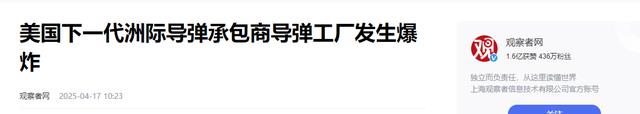 最近美国防部长赫格塞思又站出来,就在他展开一场反华论调的舌战之后,美国一家洲际导弹生产工厂突然爆炸,半栋大楼直接被炸没了。