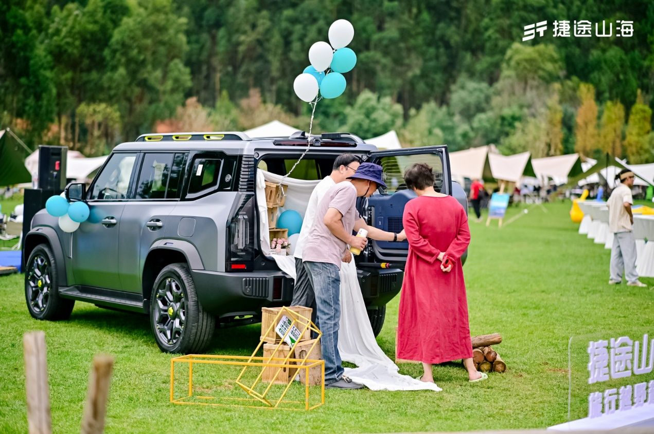 作为捷途“旅行⁺”战略指导下推出的车型,捷途山海T2非常贴切“旅行+露营”这一细分群体和车旅场景,它具备的2.2kW+6.6kW“超大充电宝”外放电功能解决了我们携带移动电源的麻烦,其后车门内还安装有大功率的音响,并设置了多个杯架和挂钩,车门打开的液压杆可以手动锁死,非常方便我们将车辆和露营区无缝结合在一起。参加活动的一个车主就表示自从买了山海T2,他基本每个周末都会去寻找露营地与朋友过一下围炉煮茶的小日子。
