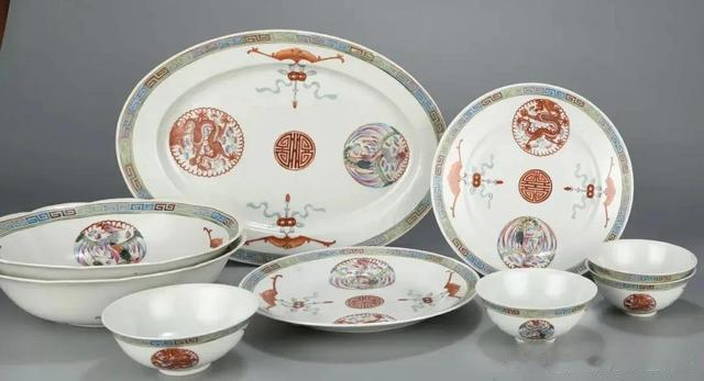 民国粉彩龙凤碗碟