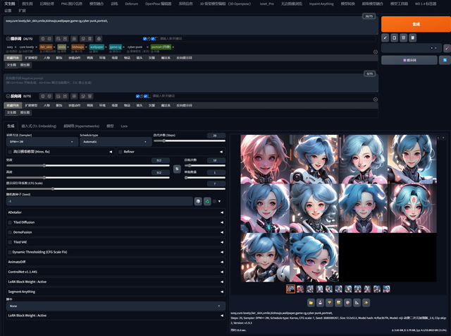 再试试批量出图,512×512规格10张动漫肖像,用时13.3s,可见技嘉超级雕RTX 4070 Ti SUPER在AI绘图方面有着出色的性能表现,出图的效率很高,可以大大的节约AI绘图的等待时间。