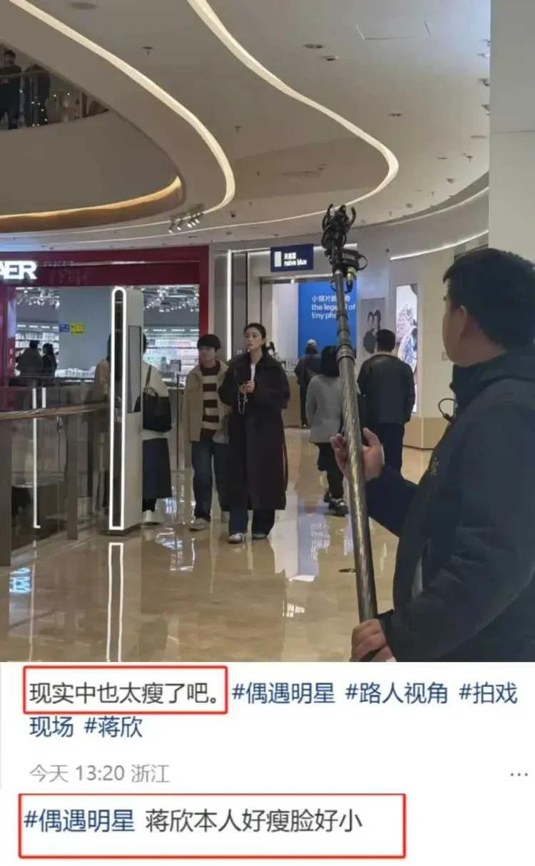 此情此景,使得路人纷纷投来赞叹之声,表示屏幕中的蒋欣并没有显得那么肥硕,现实中的她更是看起来瘦得惊人。