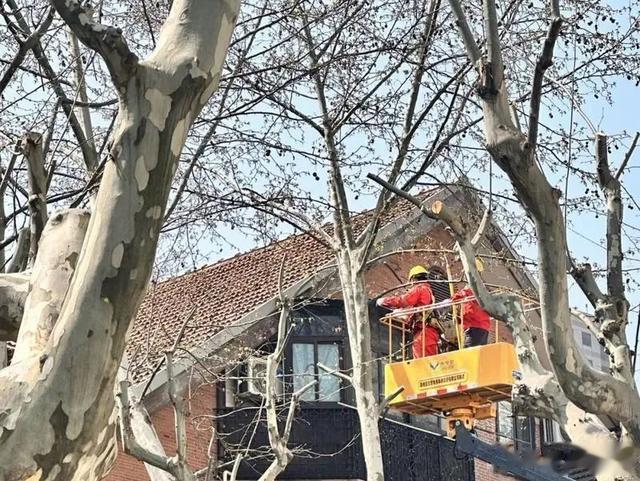 记者了解到,要减少“飘絮”,目前最有效的根本措施仍是修剪控果,因为悬铃木果球大多生长在多年生枝条上,所以一般每年12月到次年3月,区绿化作业团队都会对悬铃木多年生枝条进行适当修剪,大幅减少后期结果量,并在夏季剥芽过程中视情况修除果球。研究表明,通过合理修剪可在第2年减少90%果毛的产生。