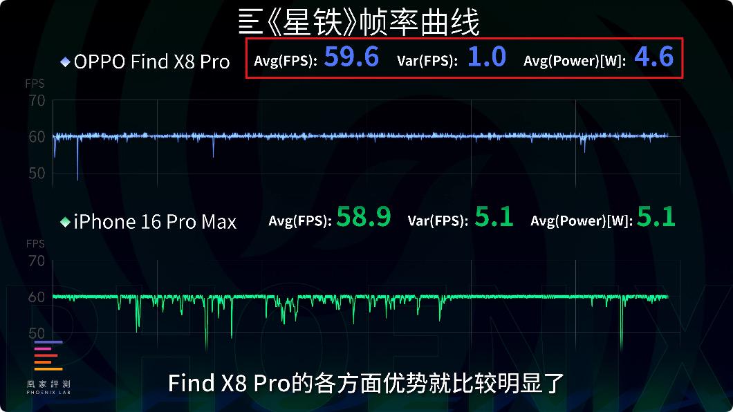 可以看到,半小时原神运行下来OPPO Find X8 Pro全局帧率表现十分稳,始终能够保持在60帧,且几乎没有明显波动;而在《崩坏:星穹铁道》中,OPPO Find X8 Pro表现同样出众,平均帧率是来到了59.6帧,能够在米哈游两款性能大作中保持稳帧畅玩,属实很不容易,只能说天玑9400旗舰芯+新一代潮汐引擎这套「组合拳」属实给力,游戏党真的可以考虑冲首发了!