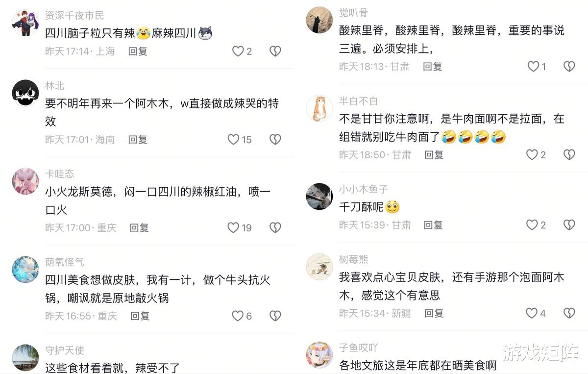 所以很快,丝毫不让人意外的是,在素来会整活的《英雄联盟》带动下,这款“虾饺”春节限定皮肤也很快带动起众多外地网友,让后者自发展开了“谁才是公认舌尖上的外交官”内卷大赛:川菜、鲁菜、粤菜、闽菜、苏菜、浙菜、湘菜、徽菜(排名不分先后)几乎应有尽有。