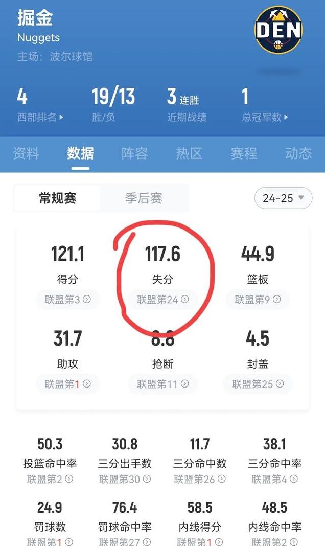 但是掘金的问题是防守,目前排名联盟第24,今天上半场就让老鹰得到71分!常规赛防守不行还可以,到了季后赛这个就非常致命了!