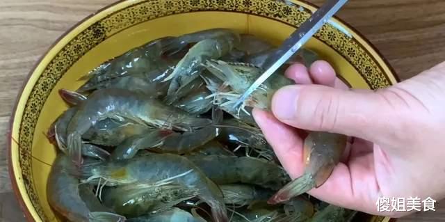 虾千万别开背去线!用牙签在第三节虾壳挑出虾线,能最大程度锁住汁水