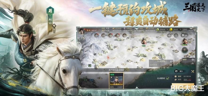 除了福利多多,《三国:谋定天下》在减轻玩家负担方面也下了不少功夫,真正做到了体贴入微。游戏内设置了一系列便捷功能,如自动铺路、一键预约攻城、练兵所自动升级以及内城资源地的智能化管理等,使得即便是在玩家离线的状态下,角色也能持续成长进步。即使你日程繁忙,无法长时间在线,只需启用一键托管模式,便能与同盟成员并肩作战,共同征战四方。