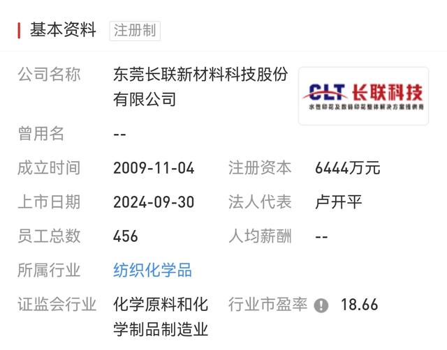 再来了解一下长联公司基本情况。2009年成立,员工456人;产业化学原料和化学制品制造。呵呵好像不是高科技哈。