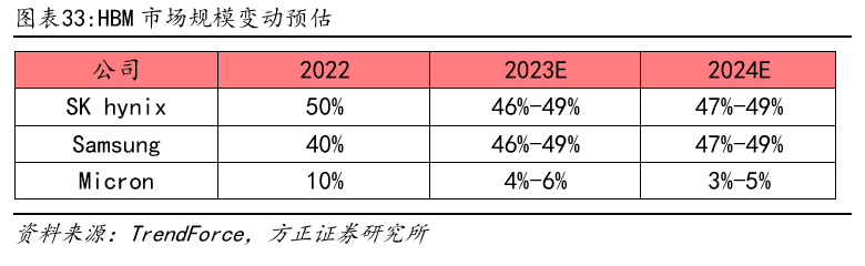 根据预测,到23年,海力士的市场份额有望提升至53%,而三星和美光的市场份额将分别为38%和9%。