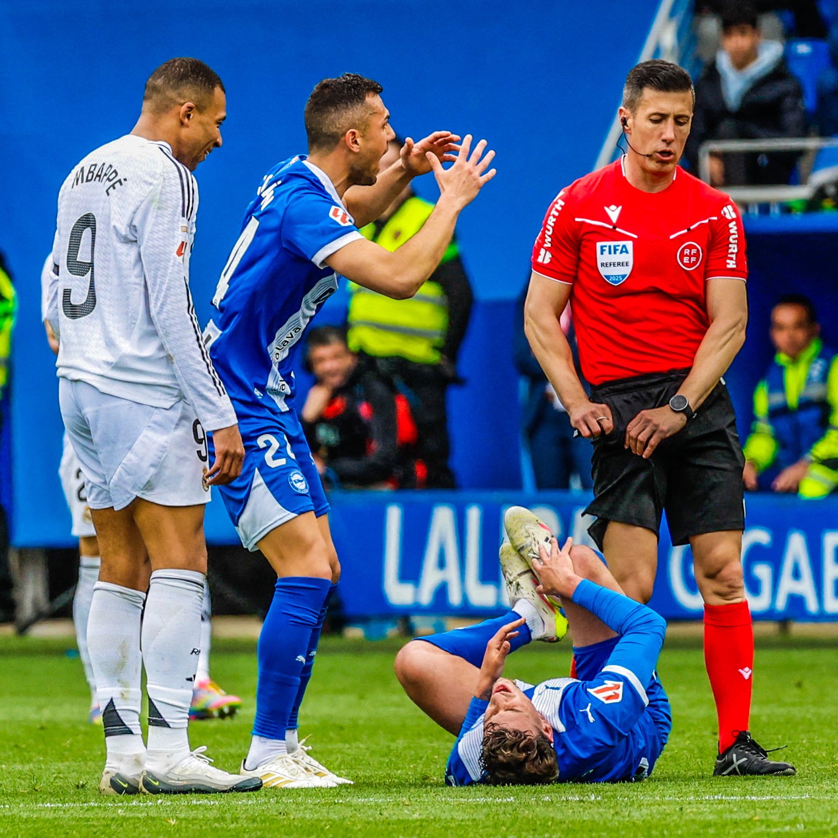 两支球队在本场比赛犯规不断,多人被出警告,主裁判也掏出了8张黄牌和2张红牌来控制局面,两支球队各自拿到了4张黄牌和1张红牌。在犯规次数方面,阿拉维斯21次犯规,皇马也有12次犯规,比赛的过程还是非常激烈的。比赛第38分钟,姆巴佩就在一次抢球的过程当中对布兰科犯规被直接出示红牌,以他的防守动作来看,接下来肯定会遭遇禁赛处罚。