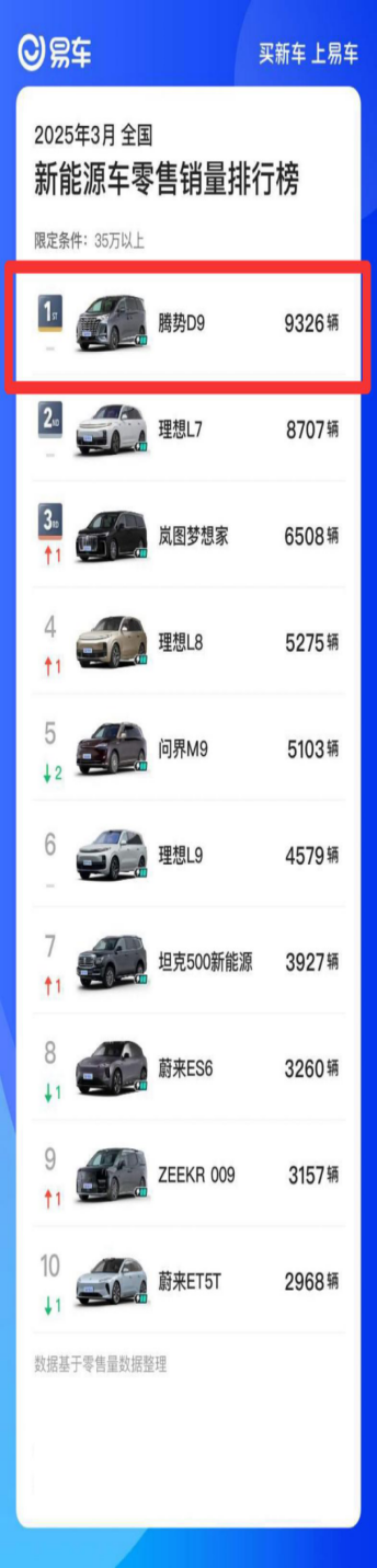 35万以上新能源汽车销量角逐,腾势D9强势夺冠