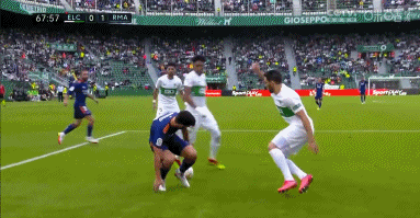第63分钟,劳尔-古蒂飞铲克罗斯被主裁判红牌直接罚下。埃尔切被迫十人应战。